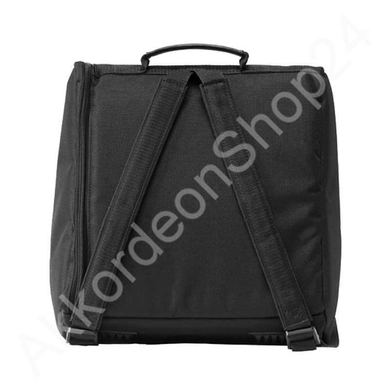This soft bag is suitable for smaller Wiener harmonicas. By back straps and carrying handle the bag is comfortable to carry. The soft padding and the hardwearing material with water-repellent coating provide a good protection for the instrument.